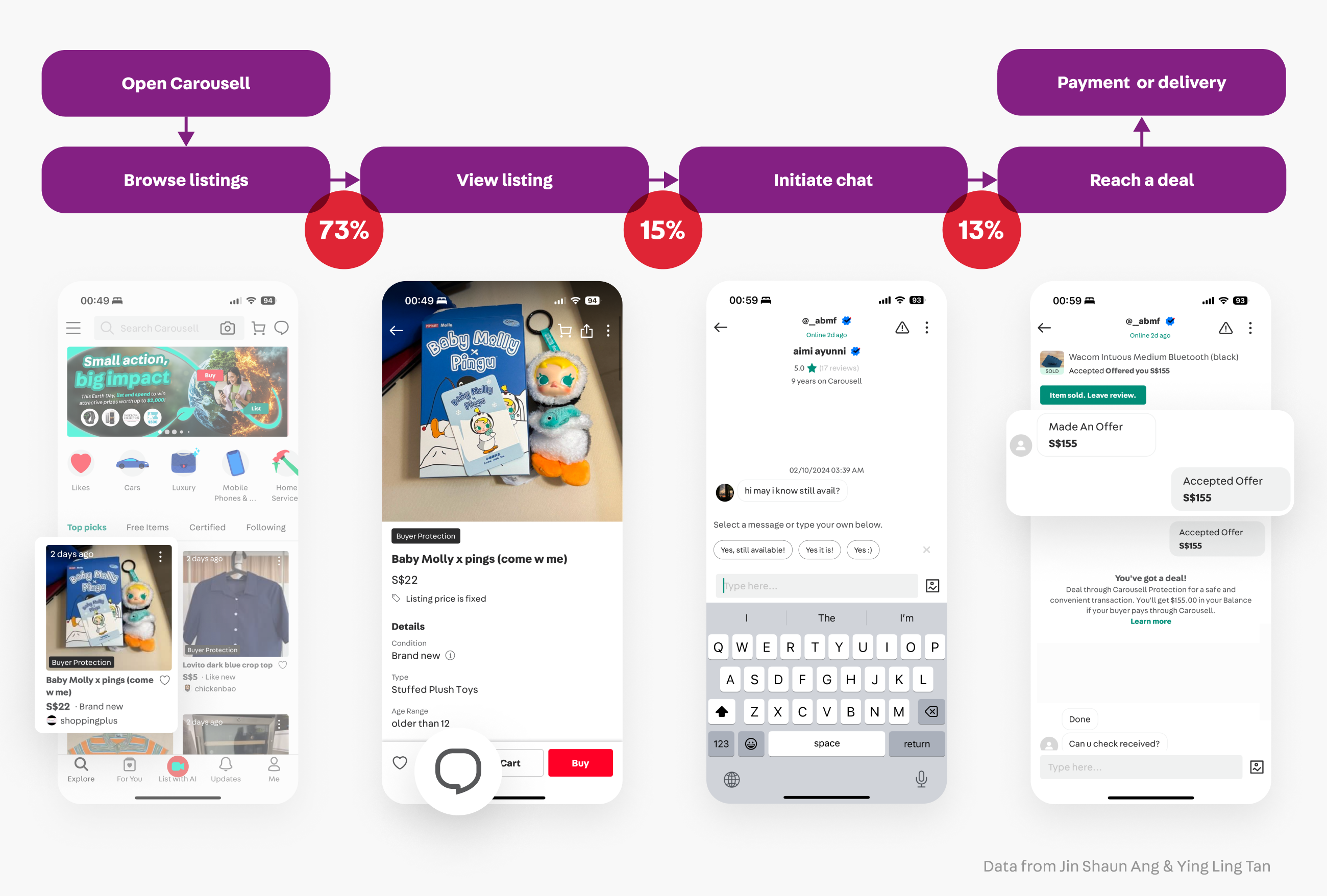 I was part of an in-depth research initative on new buyers’ shopping behaviours and usage patterns on Carousell — one of the fastest-growing secondhand platforms in Southeast Asia.